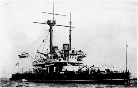 It was not until 1831 that a fifth ship of the name was started. This vessel was an 84-gun "2nd Rate" Battle-Liner; at first glance she looks very like her predecessors, but behind the square sails, the wooden hull and the triple tiers of broadside guns lay the beginnings of a design revolution. This THUNDERER was designed by Sir William Symonds, and she was a fine example of his high-sided Symonite battleships, whose chief design feature was that their wooden ribs were interlaced diagonally, and their hull and deck planking was also built up of alternating diagonal layers, and bound with iron knee-brackets. This gave them a hull of much greater length and strength with an improved underwater form, less like a bathtub and more like a clipper ship. These changes, coupled with improvements in the layout of the masts and rigging, enabled them to sail closer to the wind than before. Old sailors thought the Symonite ships were rough-riding, but this was only because they had never known the pleasures of beating to windward in a battleship before. Another revolution taking place at this time was the introduction of steam power to the fleet, and this new form of hull construction provided the strength to install steam machinery as this was introduced in the wooden fleet during the 1840's. Although the decades after Trafalgar and Waterloo were known as the Long Peace, in reality the Royal Navy was involved in "wars and rumours of wars, " mostly in the eastern Mediterranean as the Ottoman Empire continued its long decline. In 1840, HMS THUNDERER took part in the battle of Sidon, which was the last fleet action conducted purely by wooden battle-liners under sail. In the same year she acted as flagship at the bombardment and capture of the fortress at St. Jean d'Acre, which was the first action at which steam vessels were present, albeit as support vessels rather than fighting ships. Though these two actions were distinct, they are officially commemorated by the single campaign honour Syria 1840, as described above. This fine ship continued in service for another thirty years until 1870, and was fitted with iron-clad plate in 1863 for trials of new armour-piercing guns. She was not pensioned off until 1901; by then, she had been renamed NETTLE, because a new and magnificent THUNDERER was launched in 1872. THE IRON SHIPSIn only ten years from the introduction of HMS WARRIOR, the first iron battleship in the fleet, the Royal Navy introduced, with the DEVASTATION and her sister THUNDERER, the world's first mastless battleships, with the modern central superstructure layout. Armed with four 12 inch guns in rotating turrets, these ships represent the greatest single step forward ever taken in Naval design; they are really the prototypes of all subsequent warships, and are of far greater significance than the much-vaunted DREADNOUGHT of thirty years later. With 12 inches of ironclad armour from end to end, they weighed in at over 6,000 tons despite a length of only 285 feet. Their hydraulic turret machinery and twin screw propulsion put them in the forefront of mechanical design, and with sufficient coal to provide a range of 4,700 miles, they were veritable fighting coal-mines.