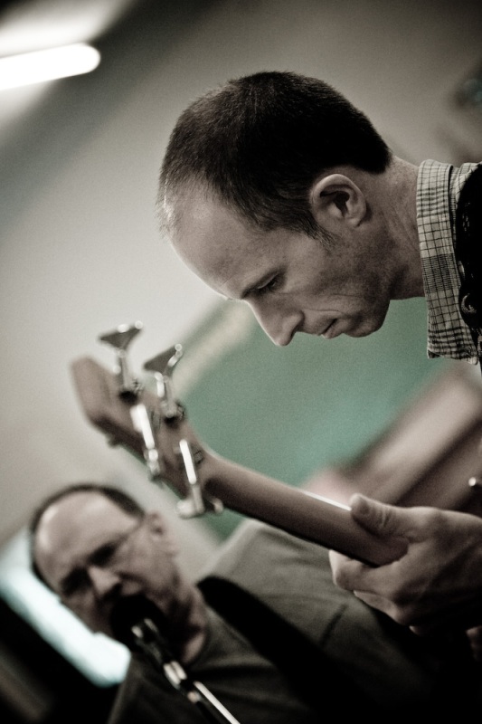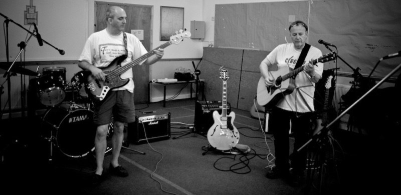 Steve and Rick Twenty years after they rocked the Sports Bar, the Thunderbox and even the Great Hall, Shy Talk reunited at Glynn Evans's home town of Ugborough. Steve Gilbert (left) now plays bass in one of Newcastle's top bands, and is a primary school teacher in County Durham. He's also a professional photographer and took most of these pictures.