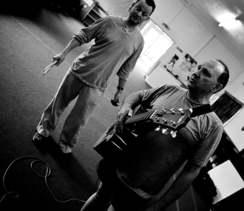Glynn and Ian Glynn Evans, lead singer, has been working for Flagship at Dartmouth for the last few years but is now back in the Service at Shrivenham as a full-time reservist. He plays regularly with Rick and lives in Ugborough with wife Wendy (whom many Manadonites will remember as the reason why they frequented the library!) and their teenaged son and daughter. Glynn's tutorials for the hard of hearing were the saviour of many an academic straggler! He's pictured here with Ian MacGillivray, who plays drums but has immense musical talents as well. Ian is now a Cdr, and likely to be the last serving member of the band.