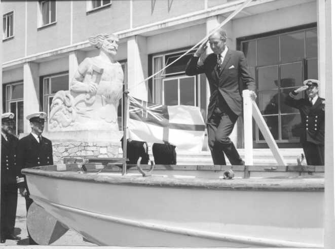 Captain N H Malim, MVO departs RNEC, June 1969. Captain Malim was the 33rd Commanding Officer of RNEC (includes Keyham) and Commanded the College from 28 March 1967 to 24 June 1969.